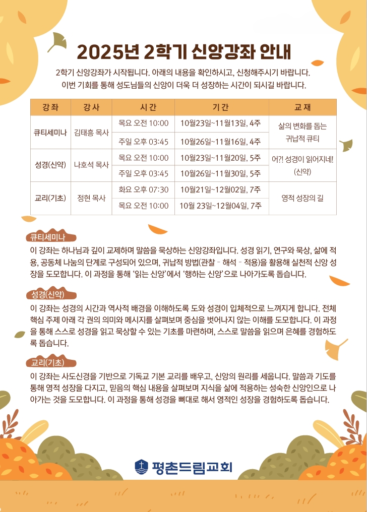 2025-2학기 신앙강좌 모집 안내를 드립니다.