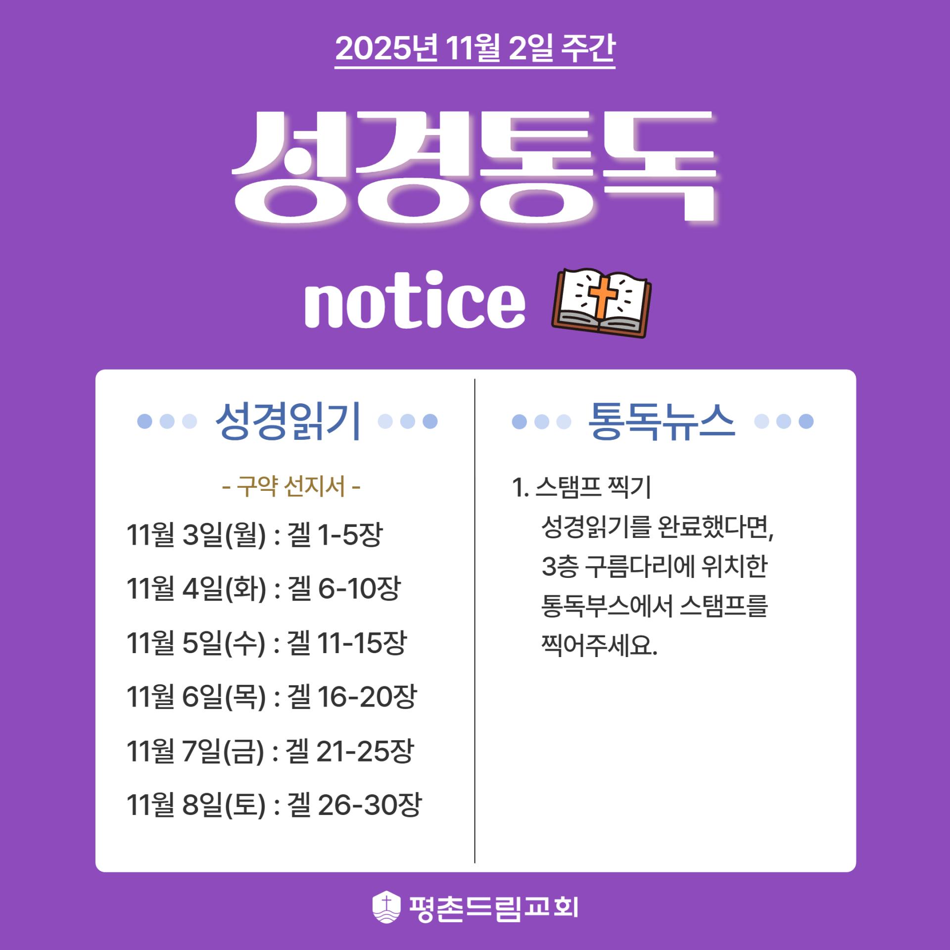 [2025년 성경통독] 카드뉴스 (11월 2일 주간)