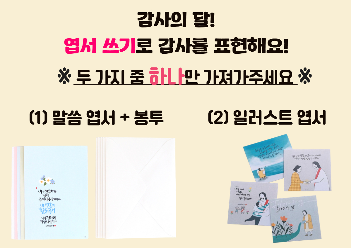 (1) 야외부스의 말씀 엽서 카드를 고른다.